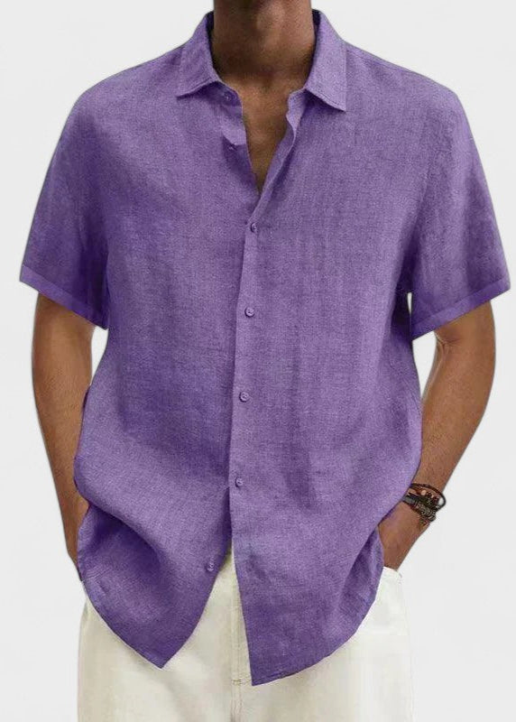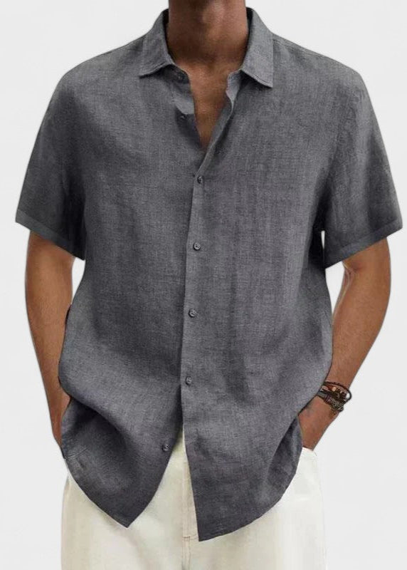 With its lightweight and relaxed fit, this short-sleeved shirt is the perfect choice for warm days with elegance. It is made from natural fabric that provides an unparalleled feeling of freshness and comfort. The minimalist design with a classic collar and front buttons makes it a versatile piece of clothing that suits both casual looks and more refined occasions.